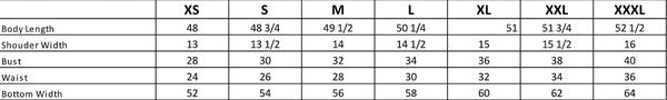 XL: 34.0 (Bust), 30.0 (Waist), null (Hips), 50.3 (Length)